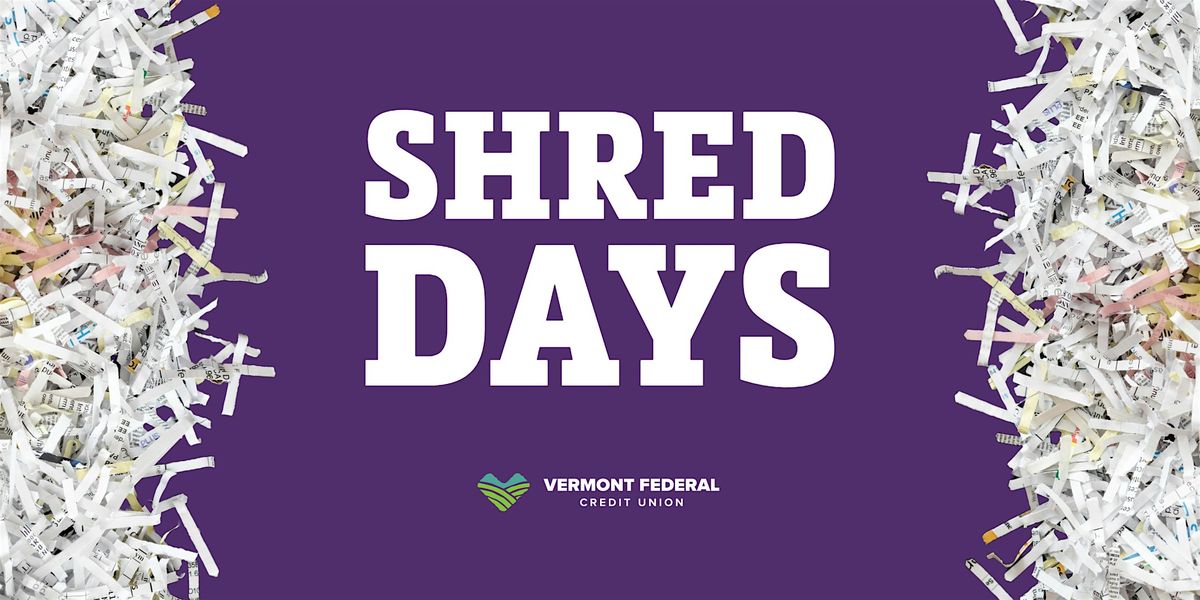 Mark your calendars for Vermont Federal Credit Union’s FREE Shred Day with SecurShred! Swing by our Kennedy Branch at 275 Kennedy Drive on May 30th from 9:00 AM - 12:00 PM
