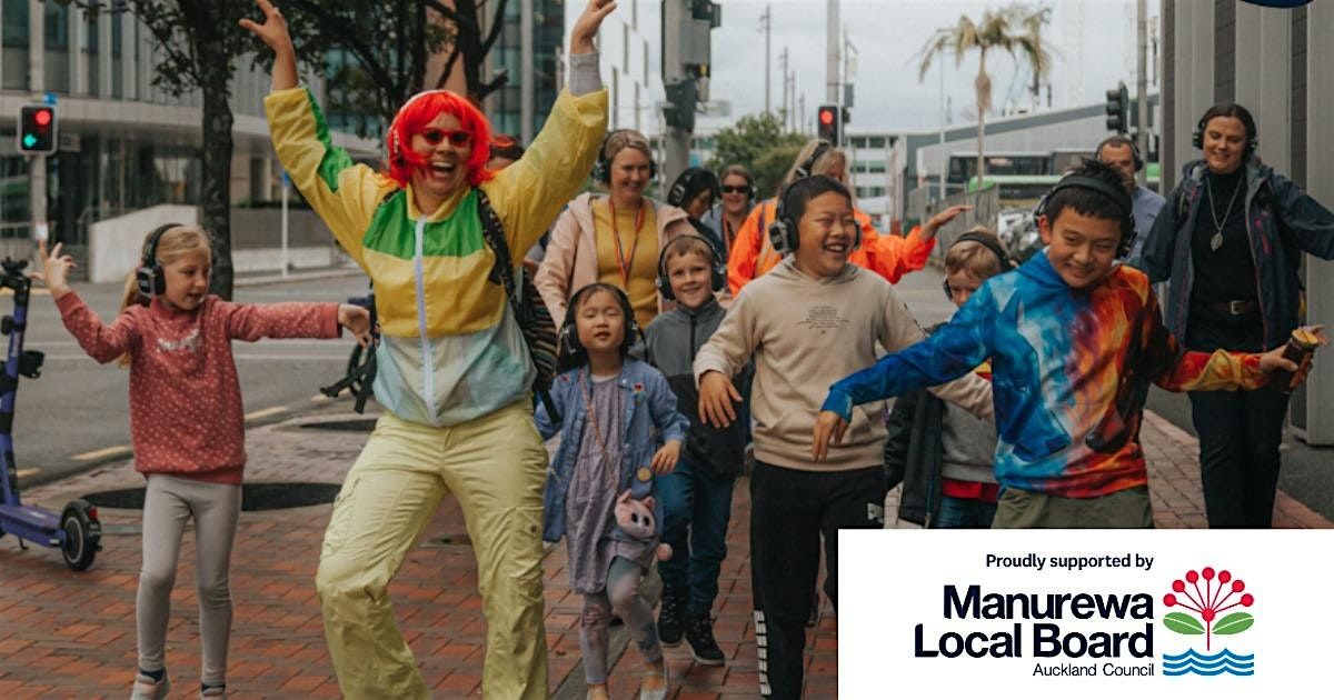 Silent Disco Kids Adventure is a 30-minute interactive audio journey filled with music, dance, riddles, and surprises. Families can join together, or children can set off on their own themed adventure through Waiata Shores Playground.