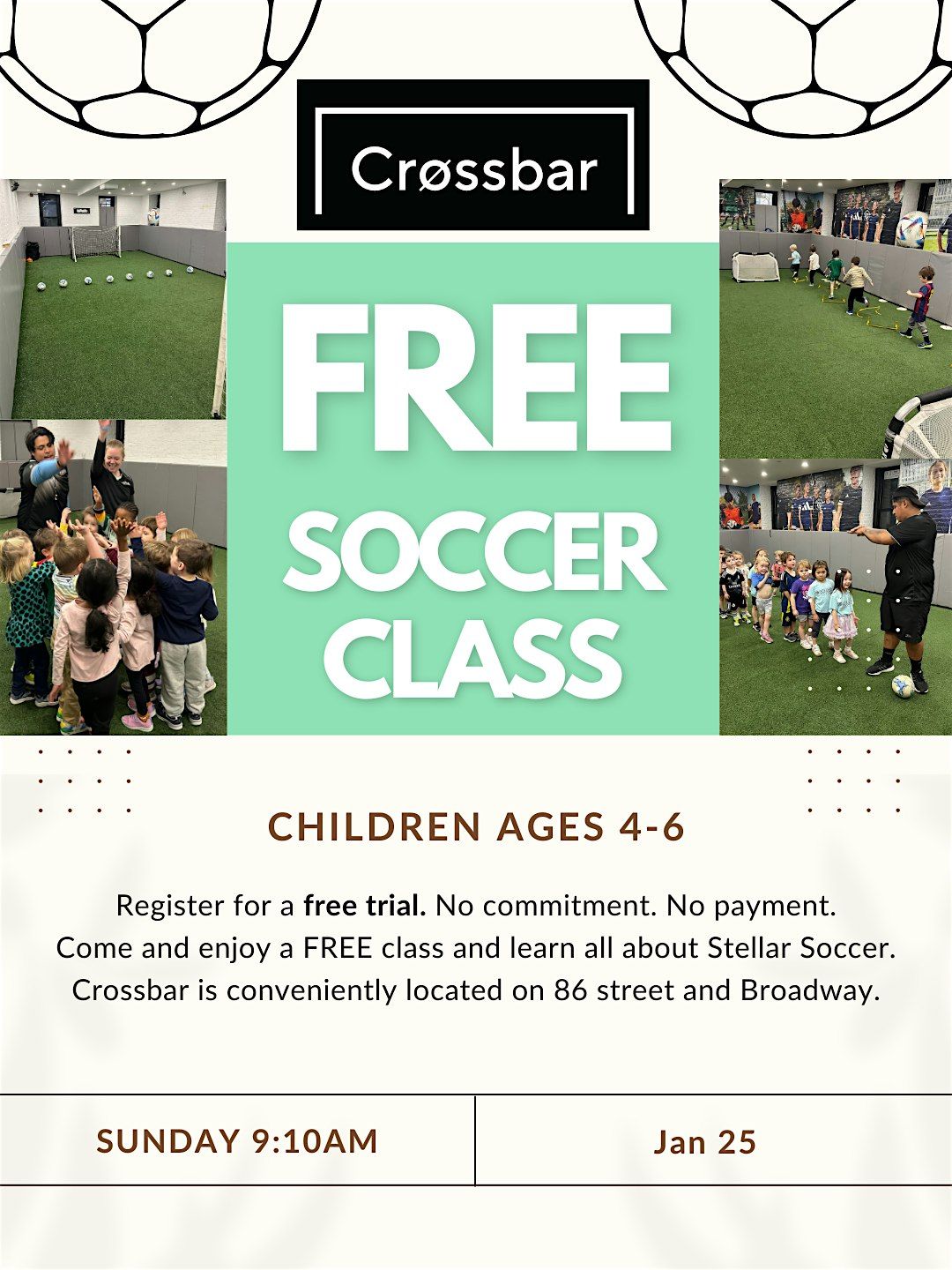 Young children are introduced to fundamental soccer skills, such as dribbling, trapping, and striking the ball through various fun activities led by educators and coaches. Size 3 soccer balls, cones, and hurdles are used to facilitate these activities. Coaches adopt a gentle approach to enable children to comprehend the essence of teamwork by organizing scrimmages during the final minutes of the class. Above all, coaches prioritize creating a fun-filled atmosphere for all.