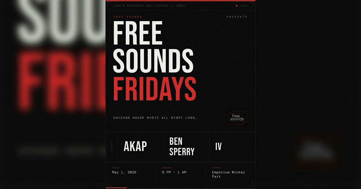 Free Sounds presents Free Sound Fridays! A night dedicated to Chicago house music featuring a 3 DJ Lineup to keep you dancing all night long