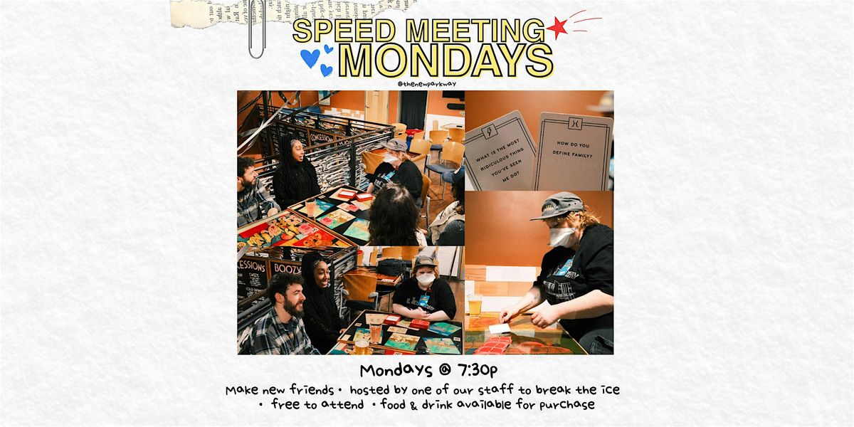 Speed Meeting Mondays is a relaxed, welcoming way to meet new people, hosted by a member of The New Parkway staff to help break the ice and guide the flow of the night.