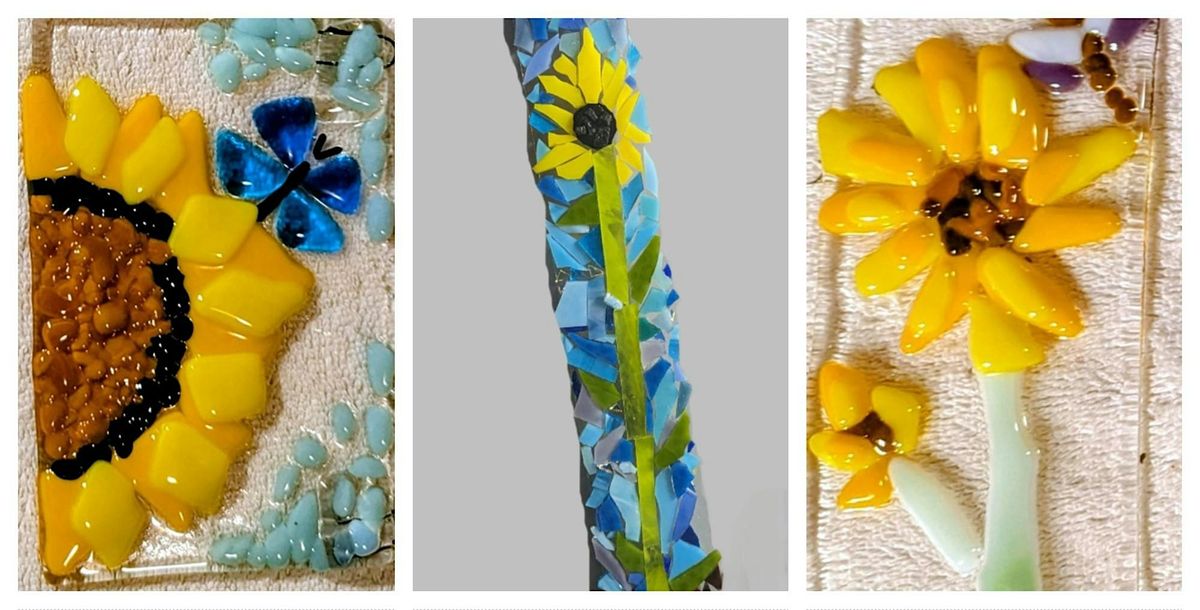 Please join us for this beautiful fused glass sunflower workshop and see how magical it is to work with glass. This is a simple class, even designed for a beginner. Choose from making a nightlight or a suncatcher hanging decor.