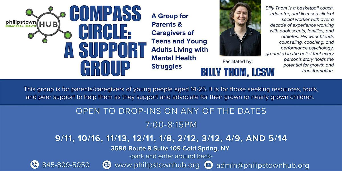 Open to drop -ins on any of the dates. You do not have to attend the entire series of group meetings. Compass Circle will meet from 7:00-8:15pm on 9/11, 10/16, 11/13, 12/11, 1/8, 2/12, 3/12, 4/9, and 5/14.