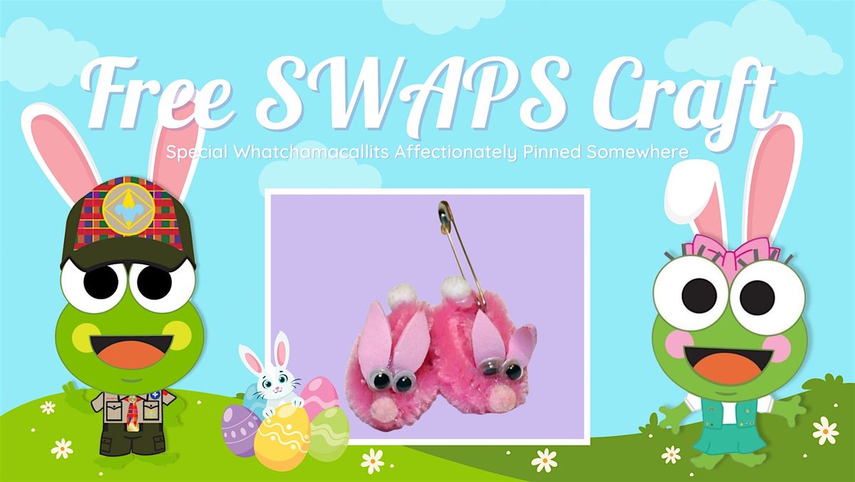 Hop in all day long with your scout or with your troop for a free scout craft. Make a Bunny Slipper SWAPS for your next campfire! (While supplies last)