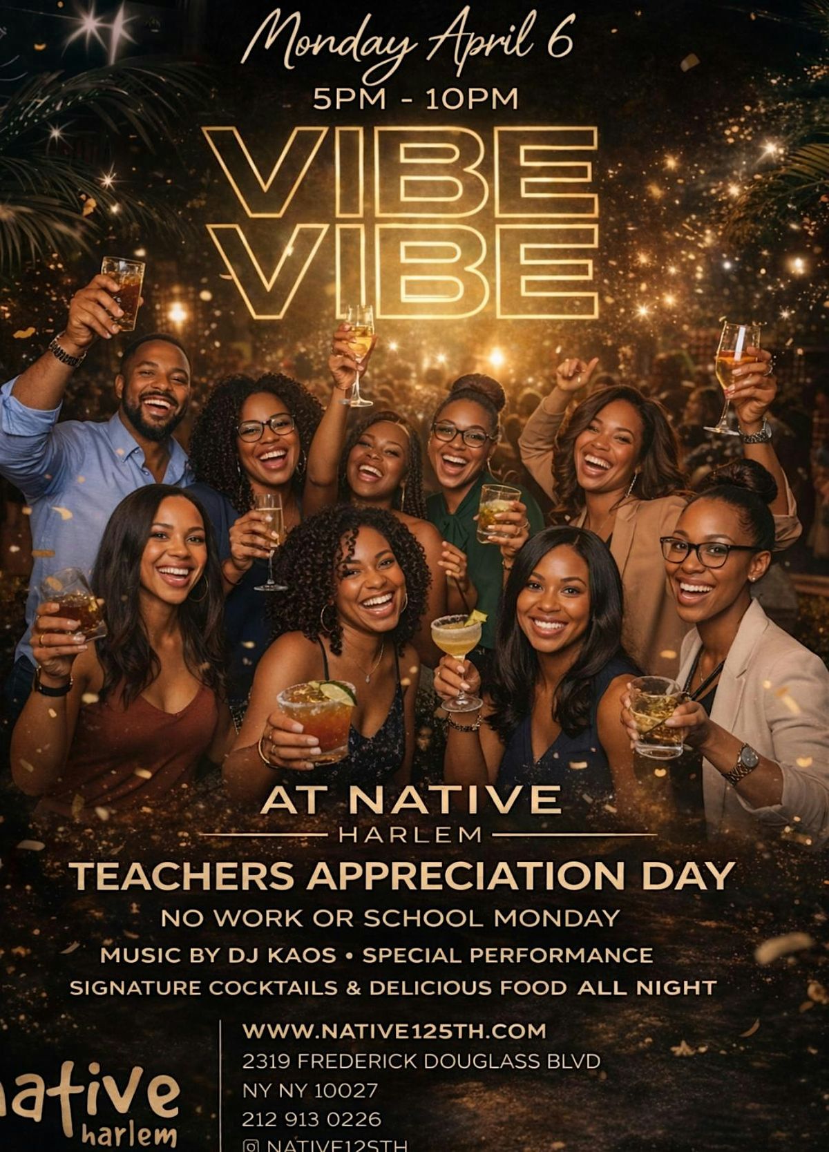 Join us for a special evening dedicated to celebrating the incredible educators who make a difference every day! Unwind, connect, and enjoy a vibrant atmosphere with fellow teachers at Native Harlem 125.