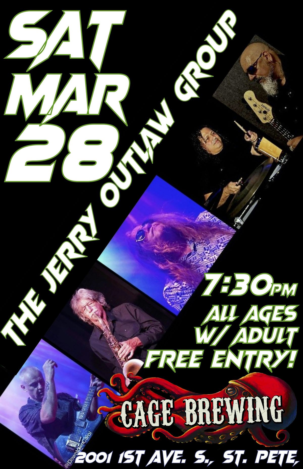 Catch The Jerry Outlaw Group live and free at Cage Brewing in St. Pete this Sat, Mar 28—don’t miss it!About this Event