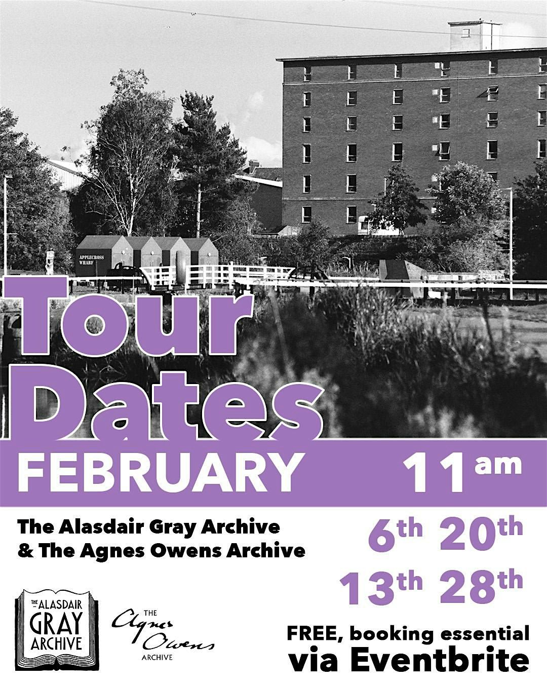 Free tours of The Alasdair Gray Archive and The Agnes Owens Archive in February 2026.