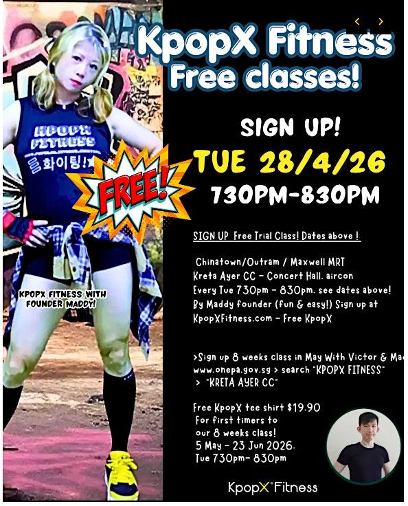 (Sign up at www.onepa.gov.sg - Courses - All Courses - Kpopx Fitness - Kreta Ayer CC , Only $14+ per session.)