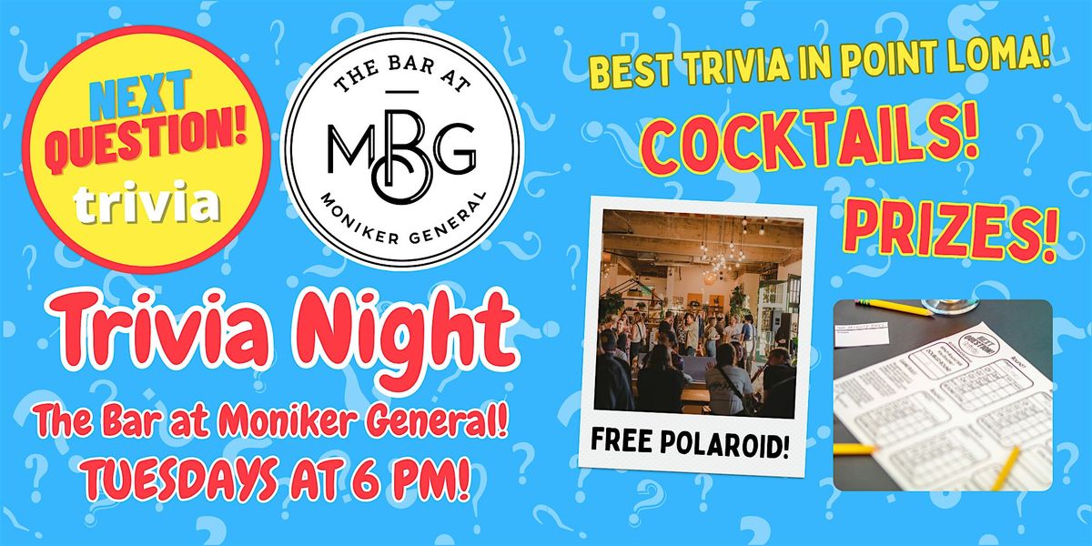 Join us for a fun night of trivia at The Bar at Moniker General! - test your knowledge, enjoy some drinks, and win cool prizes!About this Event