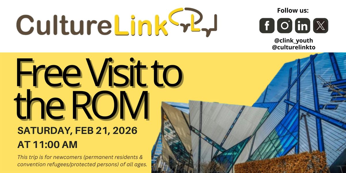 Join us for a free trip to the Royal Ontario Museum (ROM) β one of the largest and most iconic museums in North America! This special visit is open to newcomer individuals (ages 4 to 30) who hold Permanent Resident (PR) or Convention Refugee/Protected Person status.