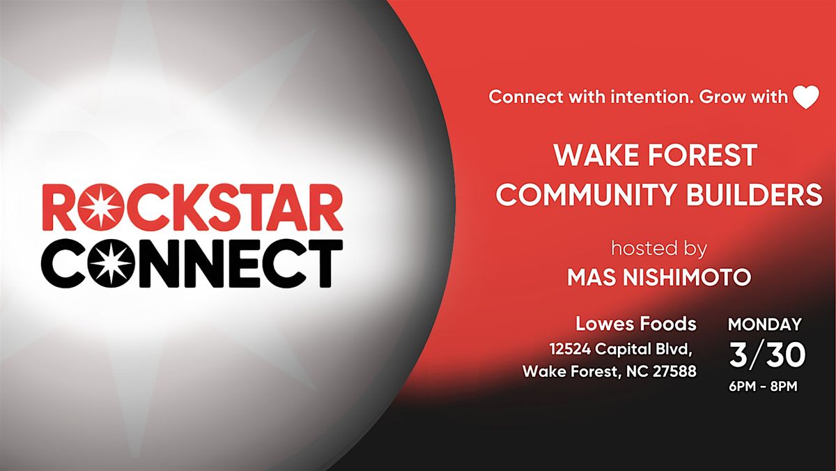 Join host Mas Nishimoto for an evening of community building on Monday, March 30, 2026, from 6 PM to 8 PM at Lowes Foods (Wake Forest Capital Boulevard).