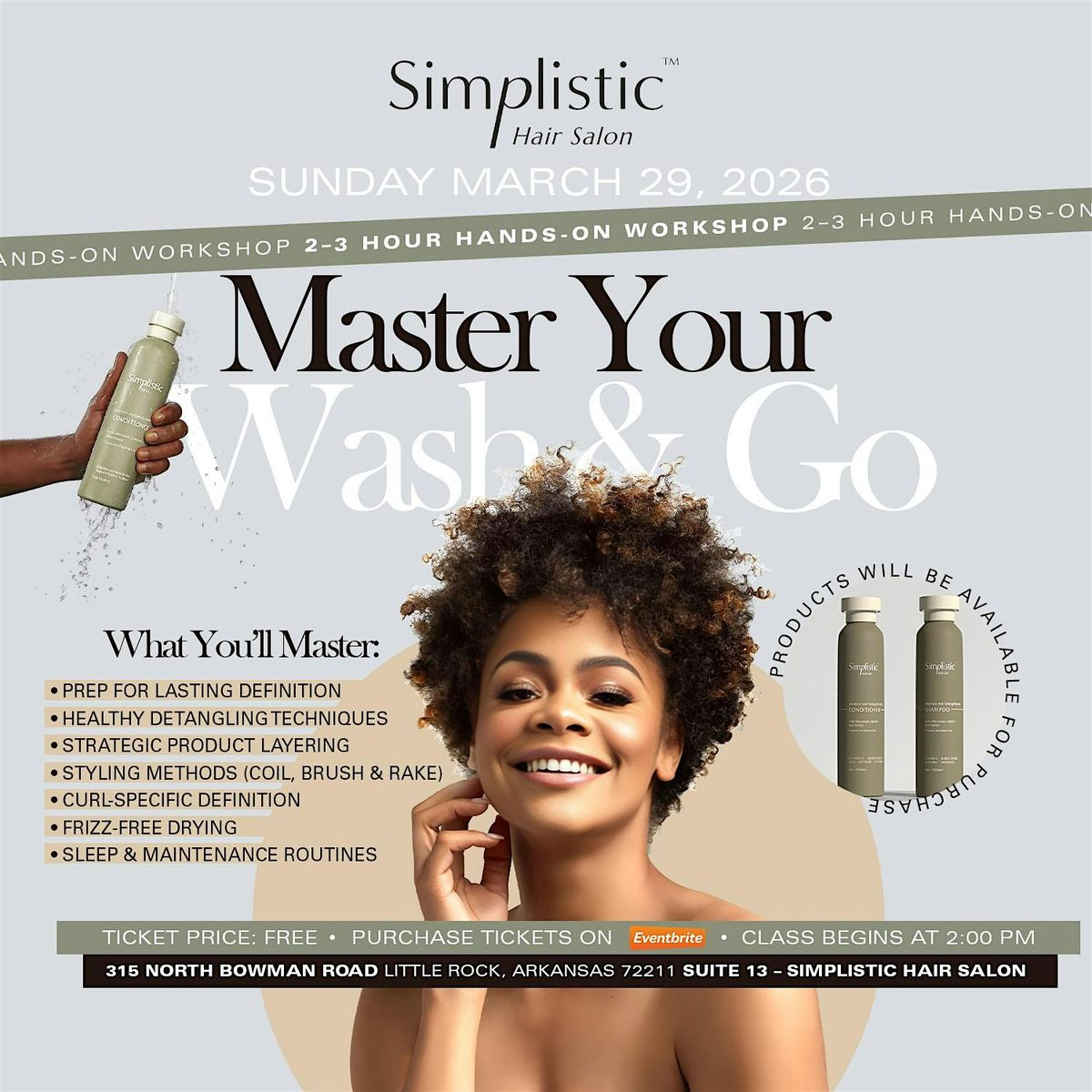 Join us for a FREE 3-hour hands-on Wash & Go Workshop led by Chanelle Brooks, Owner & Operator of Simplistic Hair Salon & Head Spa, where you’ll learn how to properly define your curls and keep them moisturized—no matter your curl type or texture.