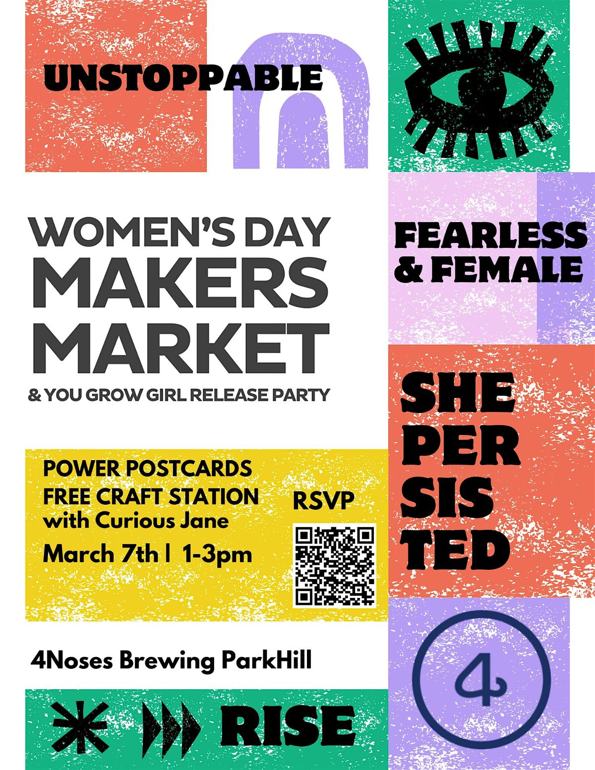Celebrate creativity, connection, and community at this free hands-on activation during the Women’s Day Market on March 7 (12–5 PM) at 4 Noses Brewing Company. This two-hour workshop (1–3 PM) invites guests to pause, create, and share messages of empowerment.