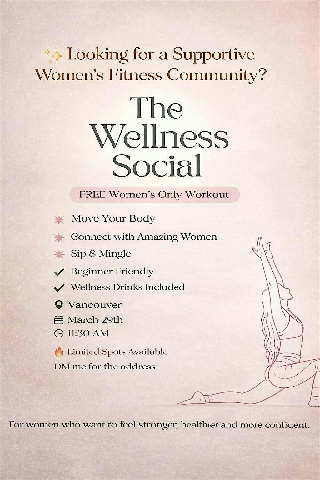 Join us for The Wellness Social — a light, feel-good workout experience designed for all fitness levels. This event is about more than just movement — it’s about connection, community, and creating space for women to come together in a supportive and uplifting environment.
