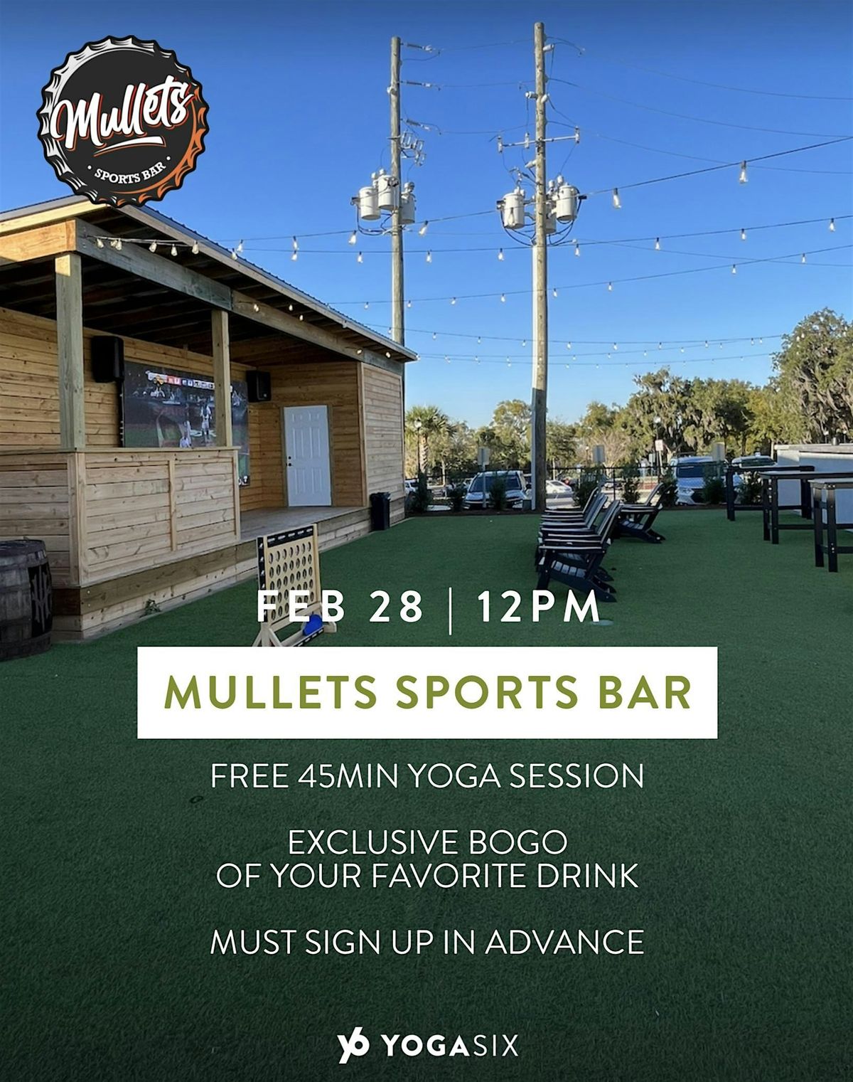 Join us for a FREE 45-minute all-levels yoga flow at Mullets Sports Bar in Clermont!