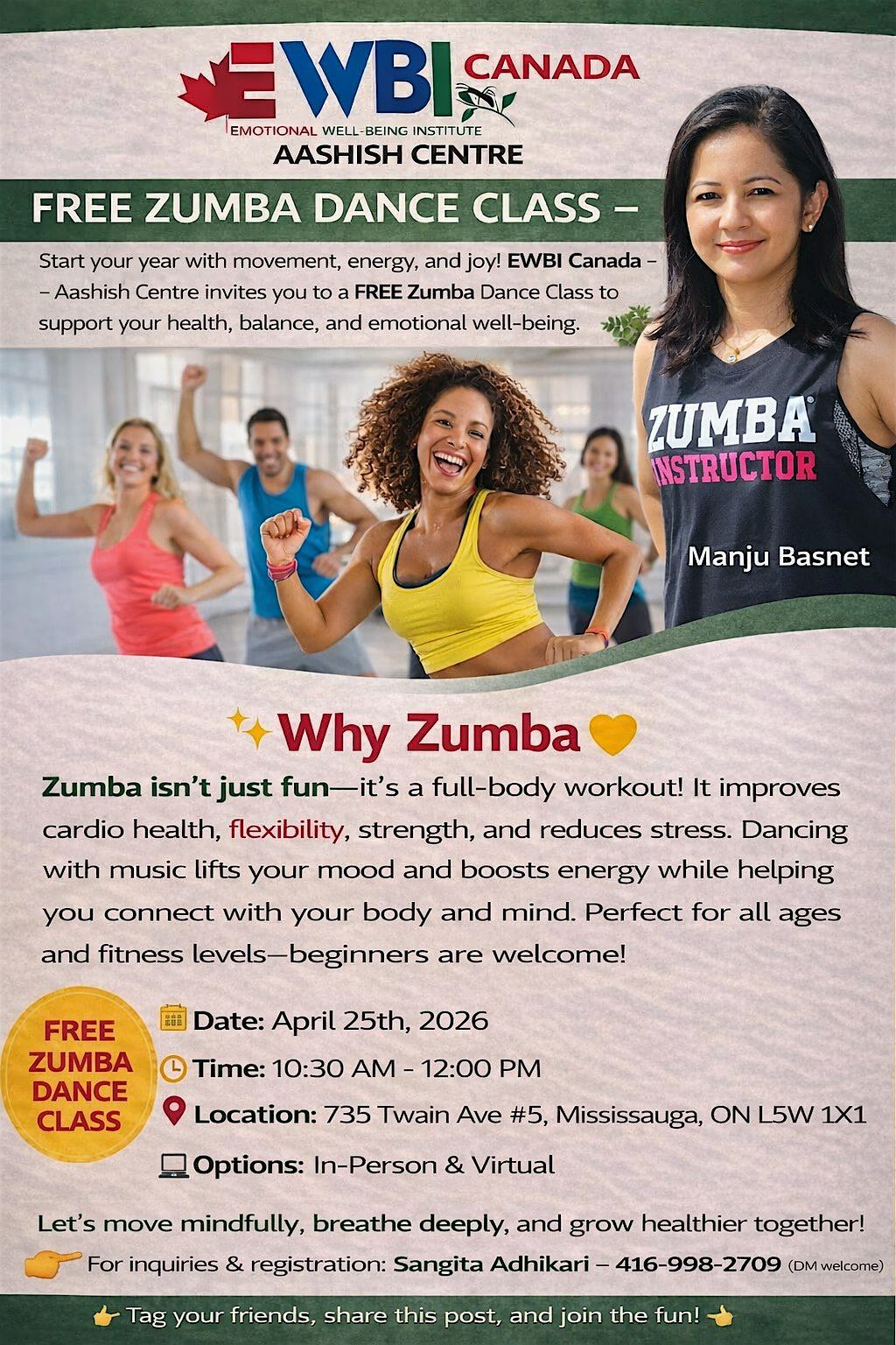Get ready to move and have fun at our FREE Zumba dance class! Whether you're a beginner or a pro, come shake it off with us at Hakka Khazana Restaurant, Mississauga. It's happening on April 25, 2026,, at 10:00 AM (Eastern Time). Bring your energy and your best dance moves—no experience needed. See you on the dance floor!