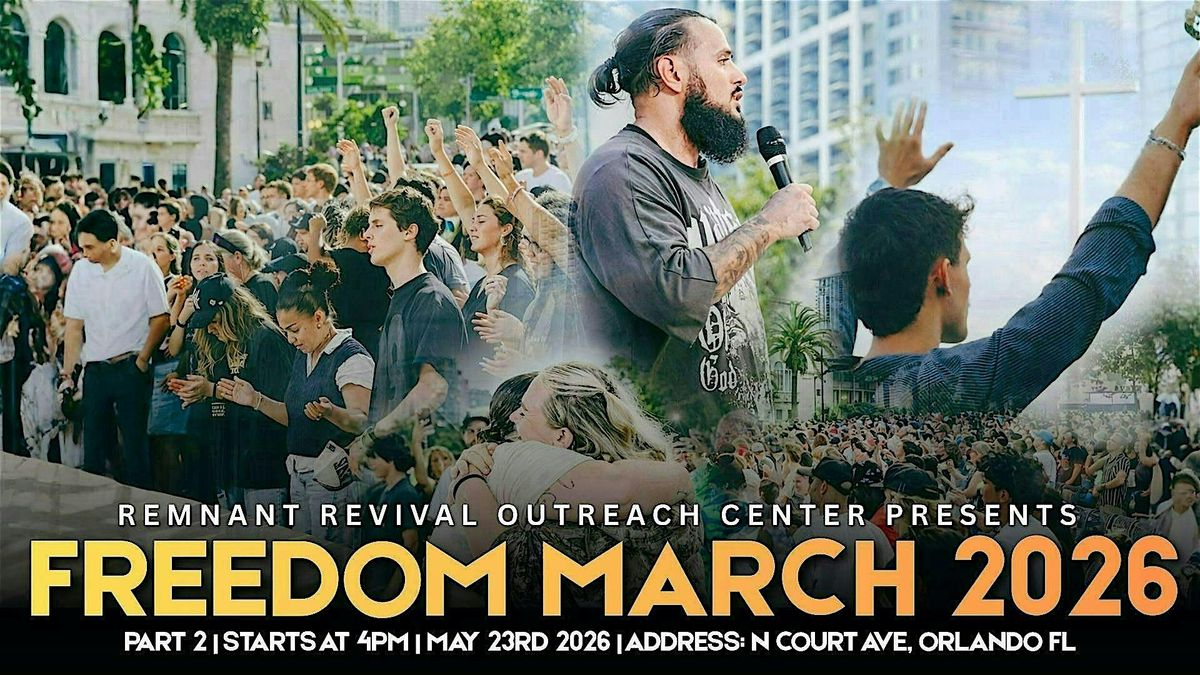 This summer, are you ready for a revival? On June 20th, 2026, we’re gathering in the heart of Downtown Orlando for Freedom March 2026. Join us on Wall Street at N Court Ave, Orlando, FL, as believers come together to evangelize, win souls, and boldly lift up the name of Jesus Christ in the streets.