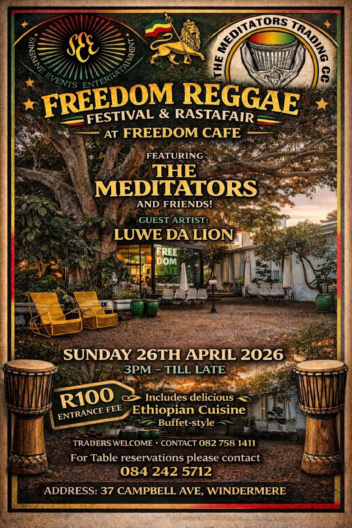 R100 entrance fee, includes delicious Ethiopian Cuisine Buffet-style