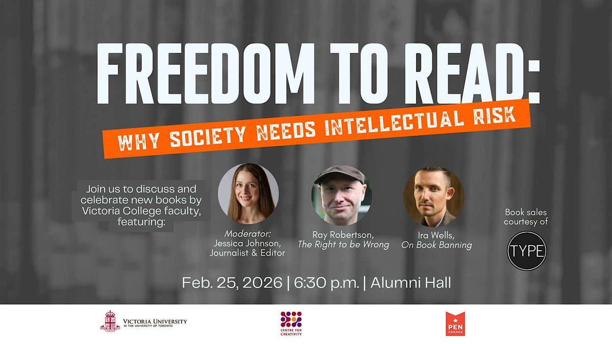 Moderated by leading journalist and editor, Jessica Johnson, the event brings together two award-winning writers, Ray Robertson (The Right to be Wrong) and Ira Wells (On Book Banning) to examine why independent thinking is important, why access to books and ideas matter, and what’s at stake when reading is constrained. The evening also celebrates the publication of the speakers’ recent works.