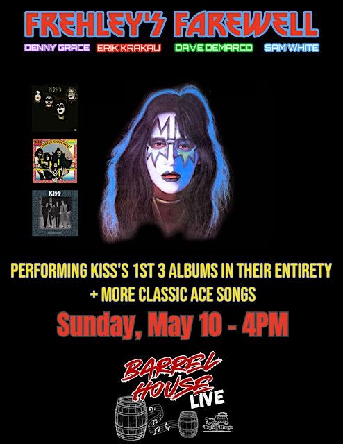 Get ready to rock and roll all night (and party every day!) at Barrel House! On Sunday, May 10th, at 4 PM, step into the concert hall for Frehley's Farewell, an epic tribute to the legendary KISS guitarist, Ace Frehley.