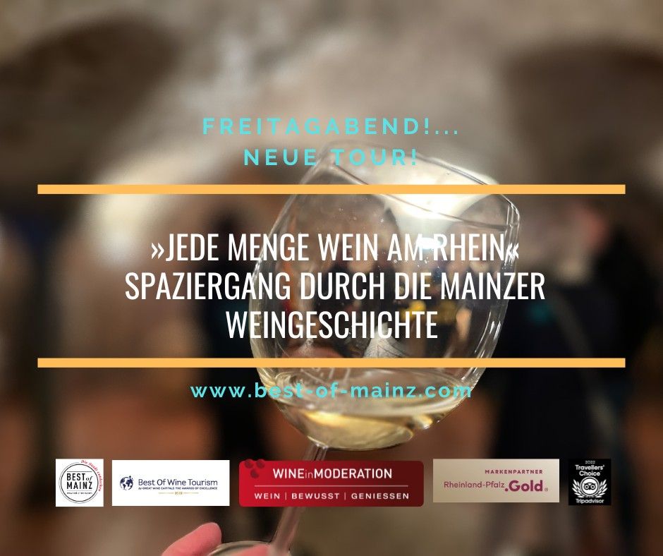 Erlebt auf diesem neuen Stadtspaziergang in der Reihe "Freitagabend!" das Viertel der Wein- & Sektproduzenten, sowie der Bierbrauer, den Mainzer Kästrich. Dort, wo sich einst die Römer niederließen und sich der letzte Weinberg innerhalb der Festung Mainz befand, erlebt ihr versteckte Mainzer Winkel abseits der üblichen Pfade und manch spannende Geschichte. Am Ende eures Rundgangs erwartet euch das für Mainz typische „Piffchen“ (0,1 l Wein). Die Strecke verläuft so oft es geht abweichend der üblichen Touristenpfade. Natürlich ohne das Wesentliche von Mainz auszulassen!