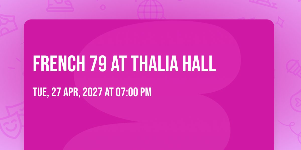 🌟 Step into a world of wonder at French 79 at Thalia Hall, where extraordinary moments await! 🏛️ Located at Thalia Hall in dynamic Chicago, IL, this event will become the talk of the town. 📅 Join us on April 27th, 2027 at 07:00 PM for a celebration that defies the ordinary. ✨ This curated experience brings together the best of entertainment, culture, and community spirit. Every detail has been thoughtfully planned to ensure an unforgettable experience for all our guests. 🎯 Take advantage of this opportunity to be part of something special. 🎊 Early registration is recommended as space is limited!