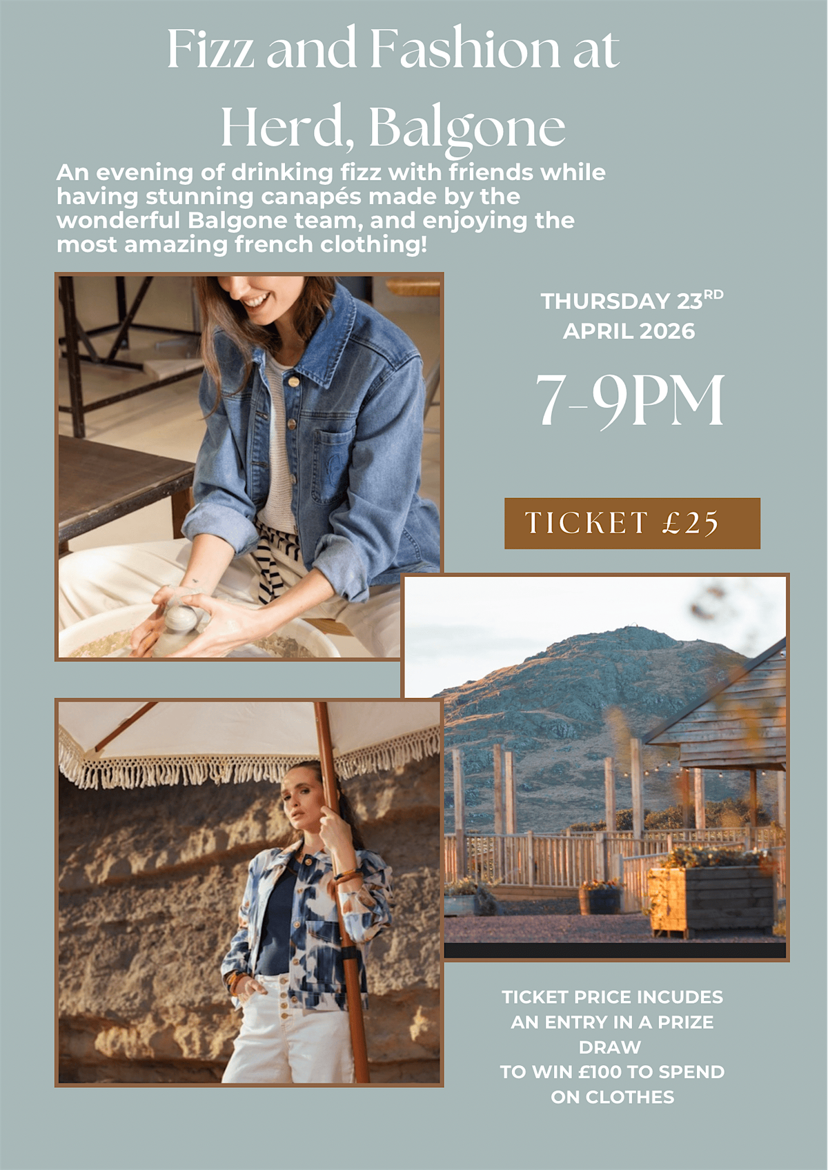 If you buy a ticket to this event it automatically places you in a draw to win £100 to spend on clothing on the evening!