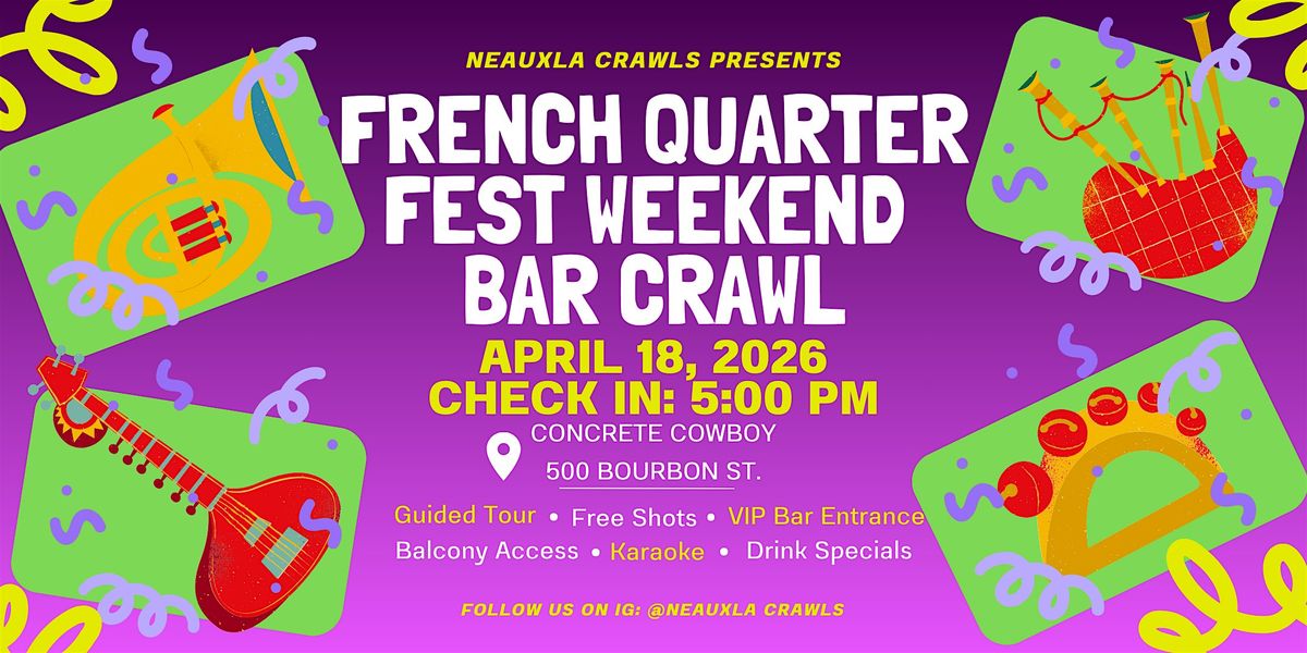 🎶🍹🎭 French Quarter Fest Weekend Official Bar Crawl 2026 🍻🍹🎷
