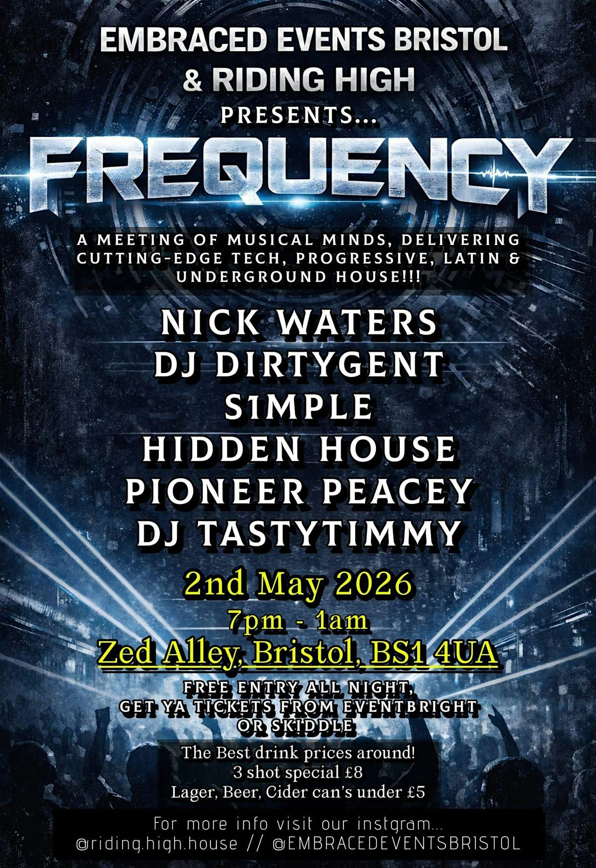We're super excited to announce our next night in collaboration with the great guys at @embraceeventsbristol. It's going to be a night of all things house at the wonderful @zed_alley on Saturday 2nd May (Bank Holiday) from 7pm - 1am. We've got some cracking DJ's lined up and the venue offers some of the cheapest drink offers in the centre of Bristol so what's not to love. Tickets are FOC and will be available from Eventbrite & Skiddle (More details to follow). Get it in the diary and we'll see you there on the first bank holiday in May...