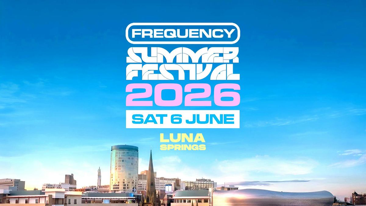 FREQUENCY FESTIVAL RETURNS TO BIRMINGHAM FOR 2026! GET READY FOR ANOTHER HUGE OUTDOOR SUMMER UKG FESTIVAL! AT LUNA SPRINGS! SOLD OUT 4 YEARS IN A ROW, THIS IS SET TO BE OUR BIGGEST YEAR YET. DON'T MISS OUT! HEADLINING ARTISTS - MASSIVE LINE UP TO BE ANNOUNCED - GLITTER STATIONS - STREET FOOD + MUCH MOREPLEASE NOTE LAST ENTRY WILL STRICTLY BE 7PM