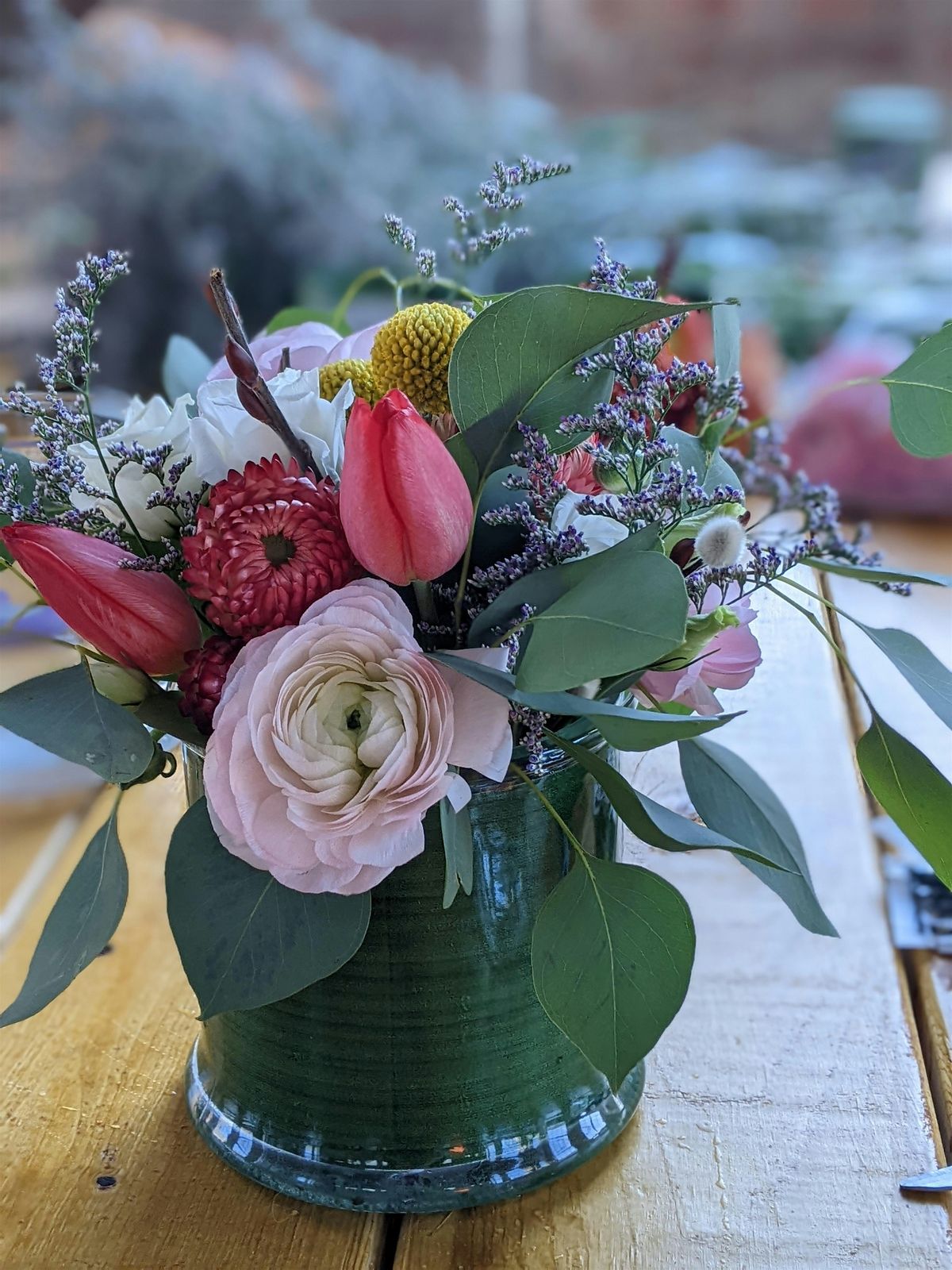In this workshop we will discuss color theory, the three 'er's, basic design and color principles as well as floral handling techniques to make a beautiful arrangement. Vase and flowers are included!