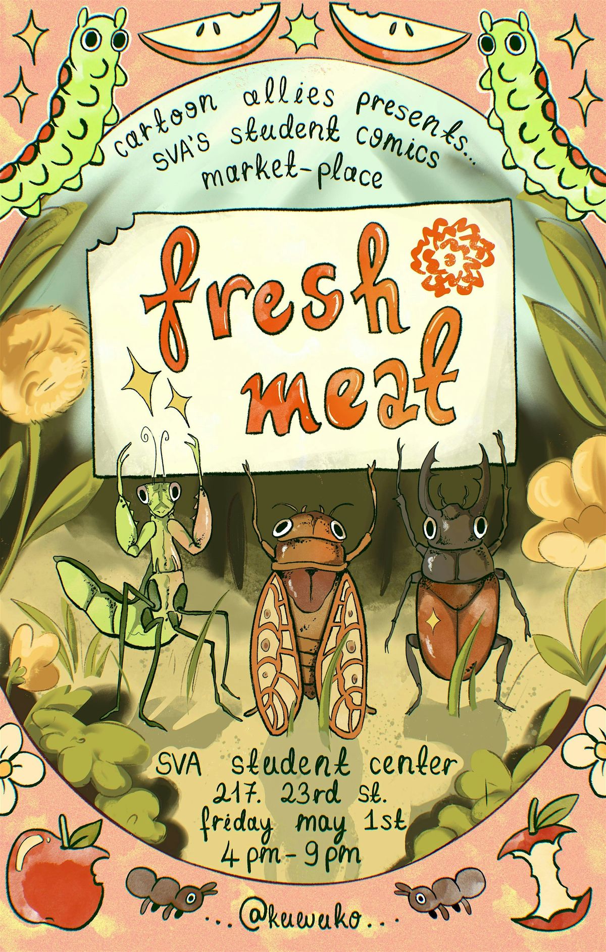 Fresh Meat is SVA’s annual student comic marketplace. It is run by Cartoon Allies, SVA’s cartoonist professional development club.