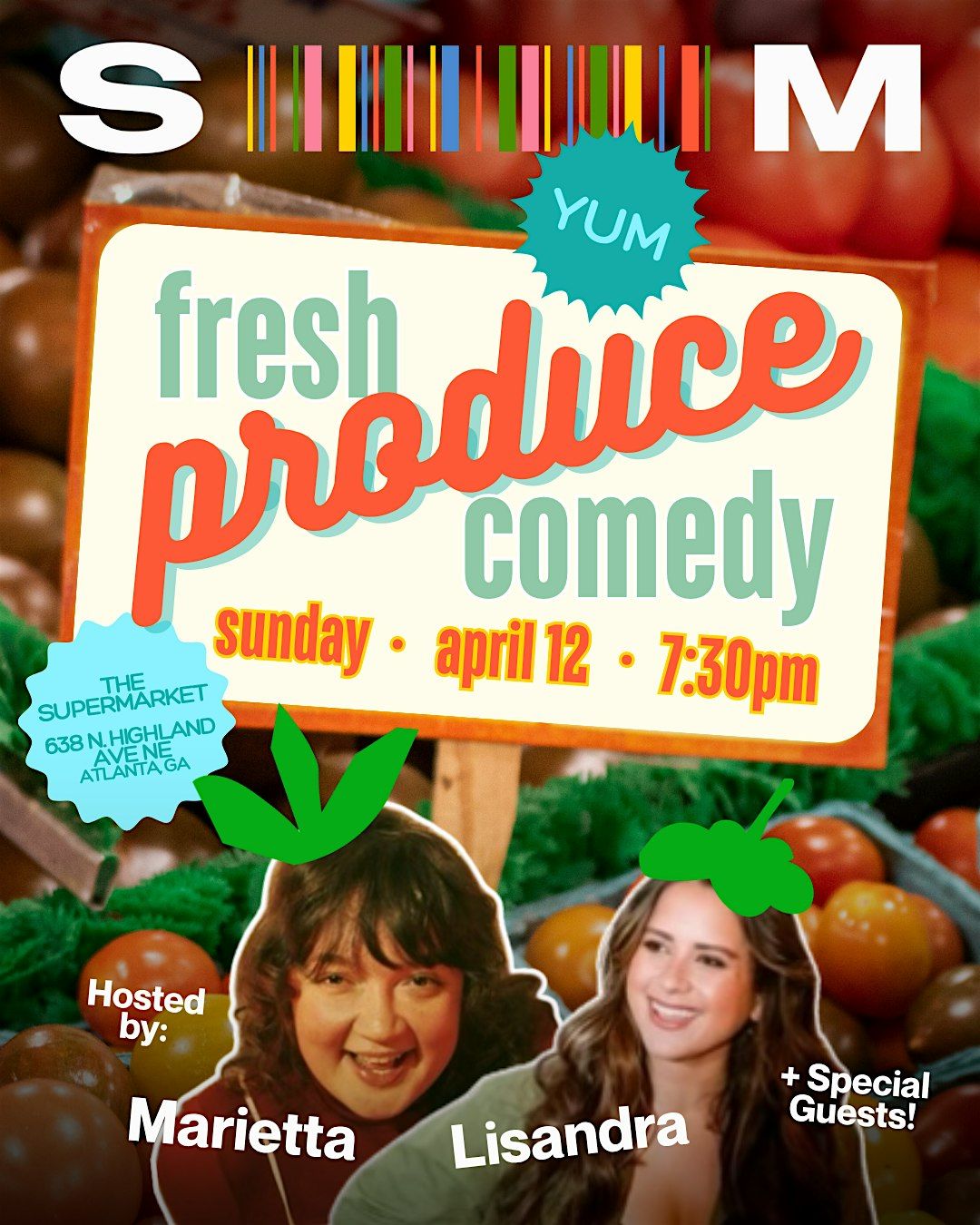 The Supermarket gets a batch of Fresh Produce Comedy on Sunday, April 12th at 8PM! It's stand-up comedy show hosted by Marietta Mendler and Lisandra Vazquez. Featuring a line-up of berry funny and nutrient-rich comedians.