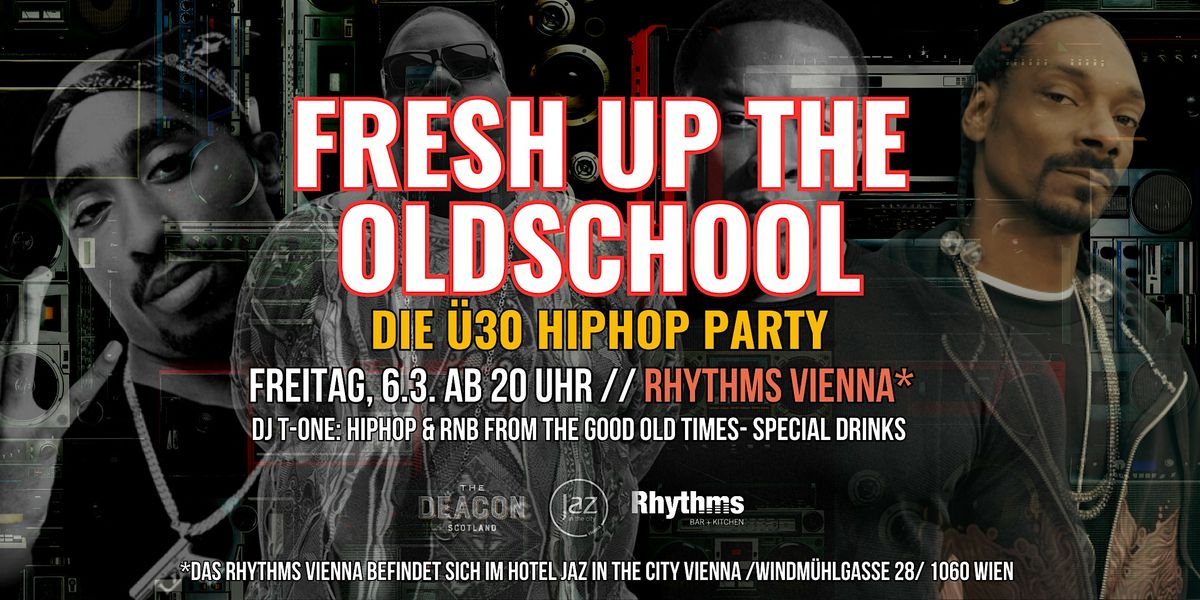 Freitag, 6.3. ab 20 Uhr – Fresh up the Oldschool – die Ü30 HipHop Party – Rhythms Vienna (im Hotel Jaz in the City)