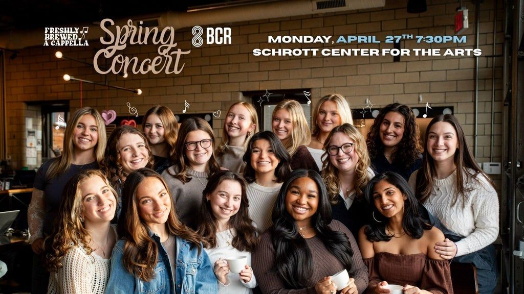 Spring into the season with the upper-voices ensemble, Freshly Brewed, at their Spring Concert! This years program features an exciting mix of modern hit favorites and throwbacks, all creatively arranged by current students and alumni. Join us for an evening of fun, fresh energy, and music thats sure to leave you smiling as we wrap up the semester and welcome spring!