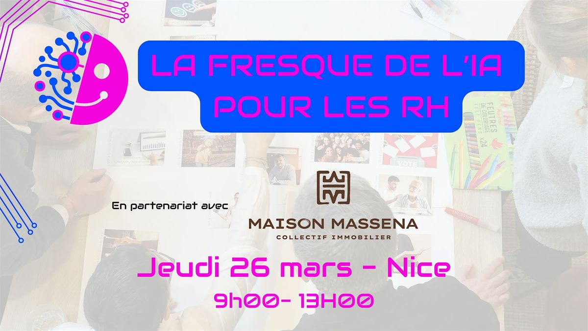 C'est pourquoi nous sommes ravis de vous proposer l'atelier "La Fresque de l'IA pour les RH" organisé par Kalaapa et en partenariat avec Maison Masséna, qui se tiendra à Nice, le jeudi 26 mars de 8h45 à 13h00.
