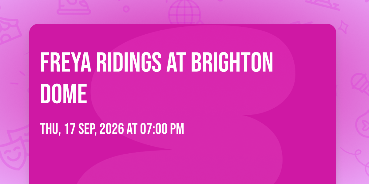 🎉 Welcome to Freya Ridings at Brighton Dome, where the impossible becomes possible and dreams take flight! 🏛️ Join us at Brighton Dome in the heart of Brighton, EN for an event that will redefine your expectations. 📅 On September 17th, 2026 at 07:00 PM, witness the transformation of space and time into something truly magical. ✨ It's a curated experience combining the best of innovation, entertainment, and community spirit, creating moments that will be remembered for years to come. Whether you're a first-time visitor or a seasoned enthusiast, prepare to be amazed. 🎊 Book now to ensure your place in this unforgettable experience!