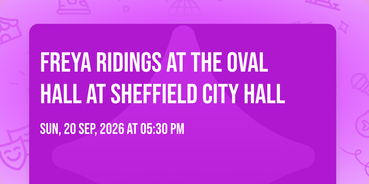 🌟 Step into a world of wonder at Freya Ridings at The Oval Hall at Sheffield City Hall, where extraordinary moments await! 🏛️ Located at The Oval Hall at Sheffield City Hall in dynamic Sheffield, EN, this event will become the talk of the town. 📅 Join us on September 20th, 2026 at 05:30 PM for a celebration that defies the ordinary. ✨ This curated experience brings together the best of entertainment, culture, and community spirit. Every detail has been thoughtfully planned to ensure an unforgettable experience for all our guests. 🎯 Take advantage of this opportunity to be part of something special. 🎊 Early registration is recommended as space is limited!