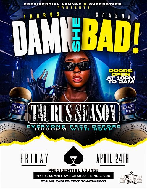 Friday April 24th Damn She Bad Edition Text 704-674-2207 for tables