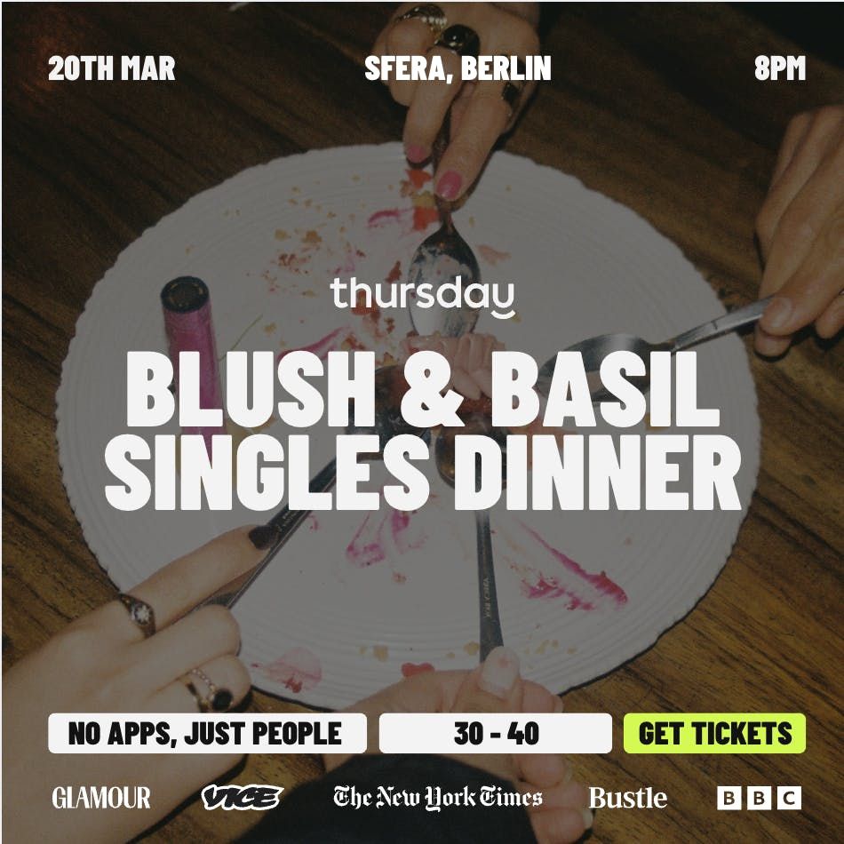 Hey Berlin! This one’s for the 30-40 plant-based crew who would rather meet over a meal than a message. It’s over cute bites with cute people where dinner could turn into something delicious. Your excuse to flirt AND to not have to make dinner. Win-win.