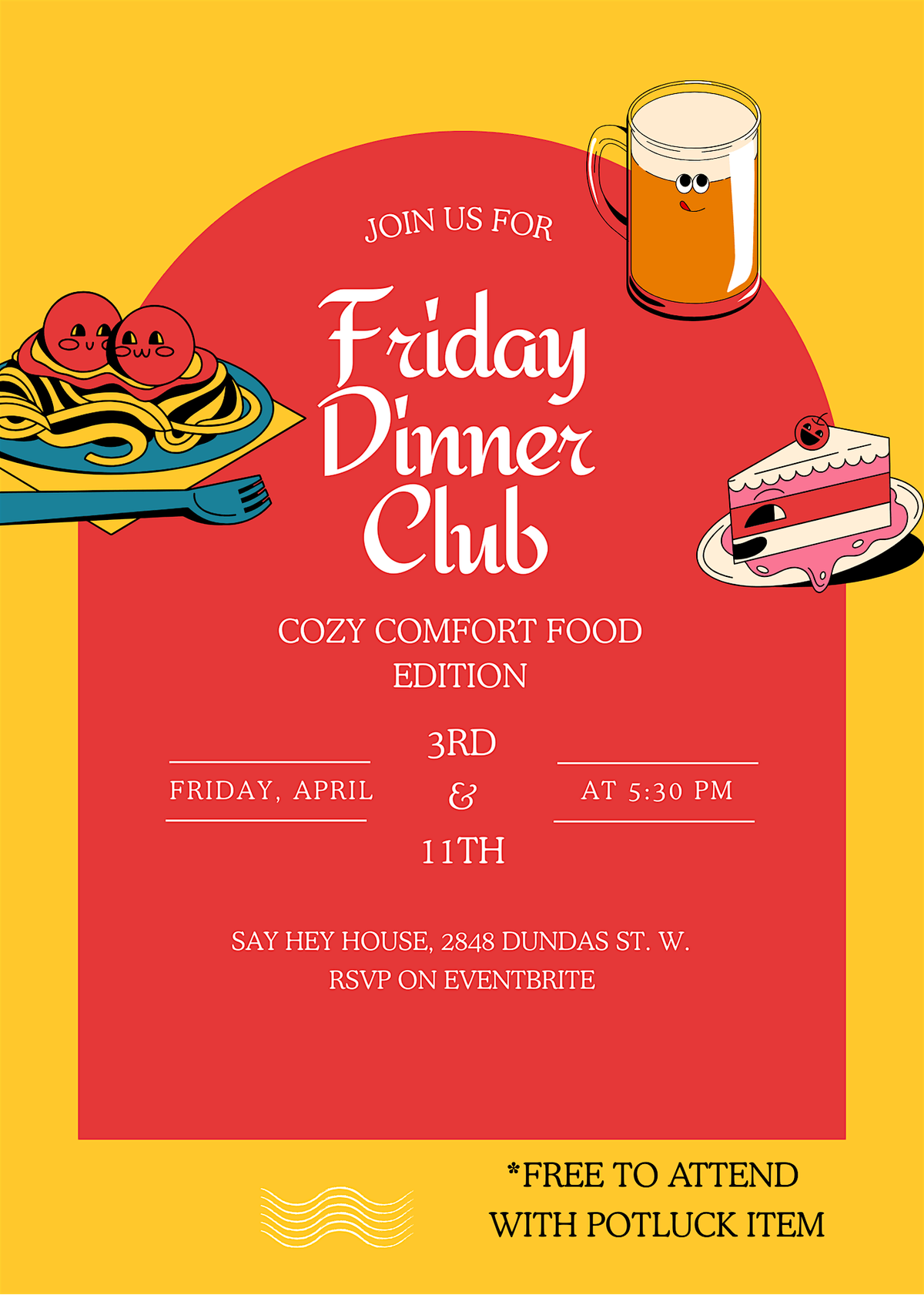 Join us at Say Hey House for a comforting homecooked dinner! Served potluck style. We will watch something on our big screen too.