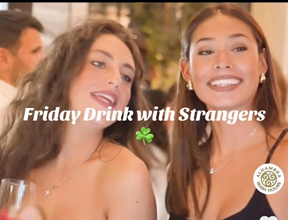 "Drinks with Strangers" groups together complete strangers for a fun night out. So join us for a fun evening filled with delicious food, refreshing drinks, and the opportunity to make New Friendships. This event is at the cozy Alhambra Irish House. Come unwind after a long week, meet new people, and enjoy great company. Live music from 7pm . Enjoy great blues. Don't miss out on this chance to expand your social circle and have a fantastic time. See you there!