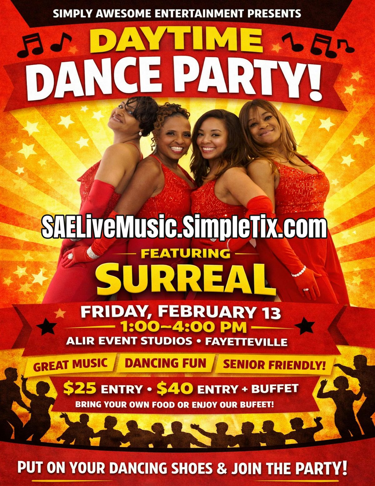 Join us for a Senior-Friendly Day Dance Party featuring the all-girl powerhouse group Surreal bringing the grooves, the classics, and the kind of music that makes you move without even thinking about it.