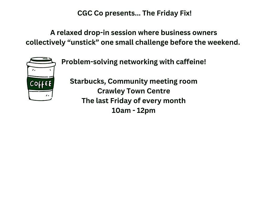 Friday Fix is a relaxed, Friday morning coffee & chat designed for local business owners who want space to think, talk things through and leave a little clearer than when they arrived.