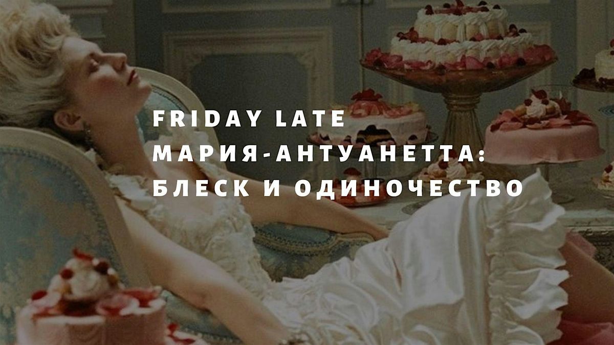 Вечерний формат FRIDAY LATE — это возможность увидеть выставку с проводником, не пропустив ни одной интересной детали. Вы узнаете, как рождался стиль Марии-Антуанетты, какие тайны скрывают её драгоценности, как так получилось, что она была одинока при всем блексе французского двора и почему её образ снова и снова становится источником вдохновения для кутюрье.
