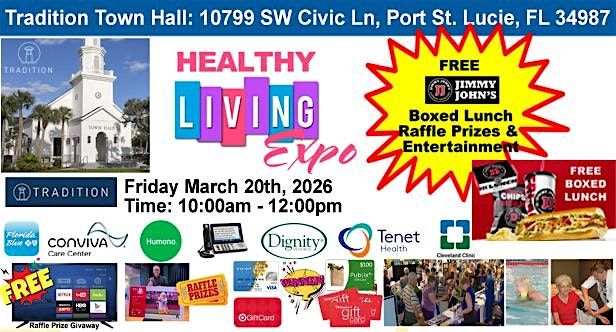 Annual Health Expo at The Tradition Town Hall. FREE Jimmy Johns Boxed Lunch