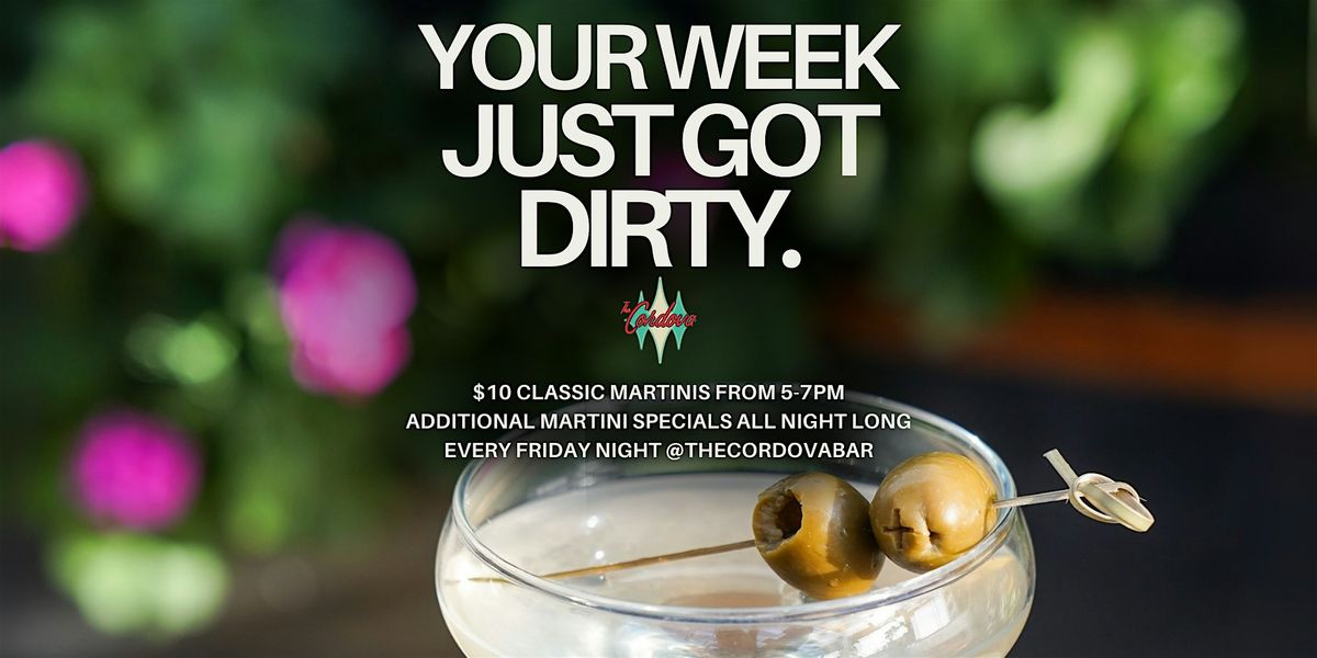 Fridays are Martini Night at Cordova! $10 Classic Martinis from 5–7PM and additional specials on our Martini Madness Menu available all night long. Vodka, gin, dirty, extra dirty, blue cheese olives… we’ve got all your favorites.