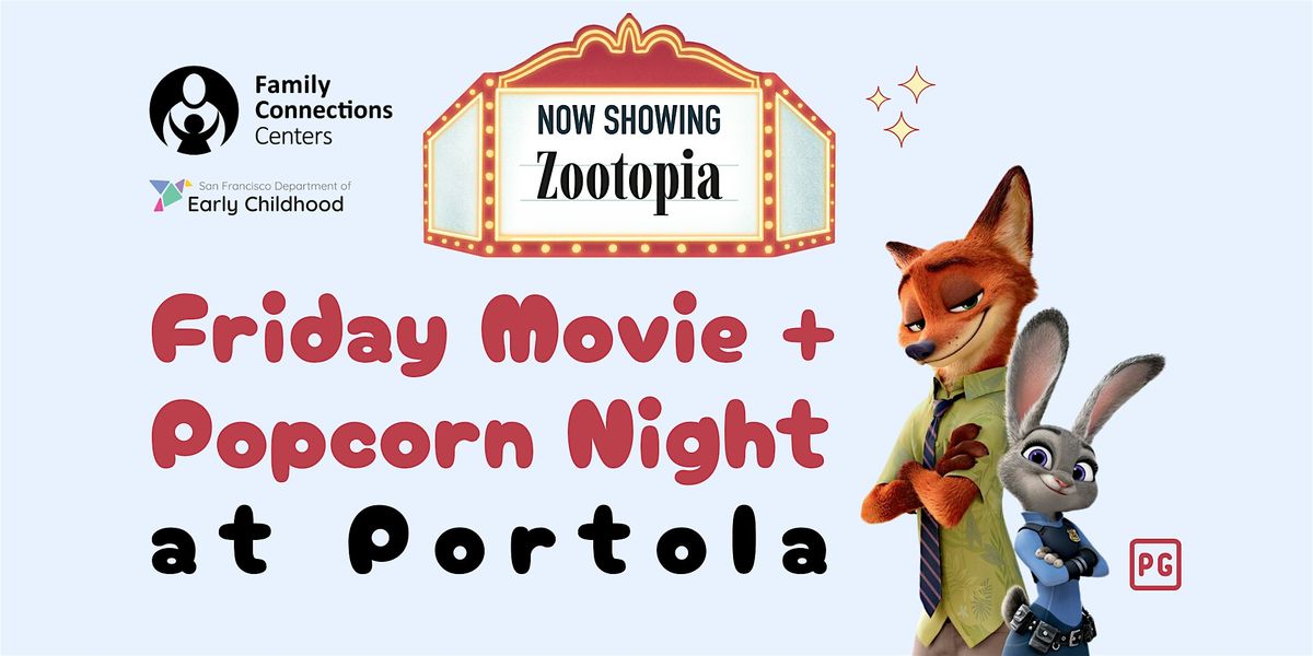 ¡Únete a nosotros para una divertida noche de cine en familia con la película Zootopia! Disfruta de una tarde con palomitas de maíz, aperitivos y tiempo para relajarte y conectar con otras familias.