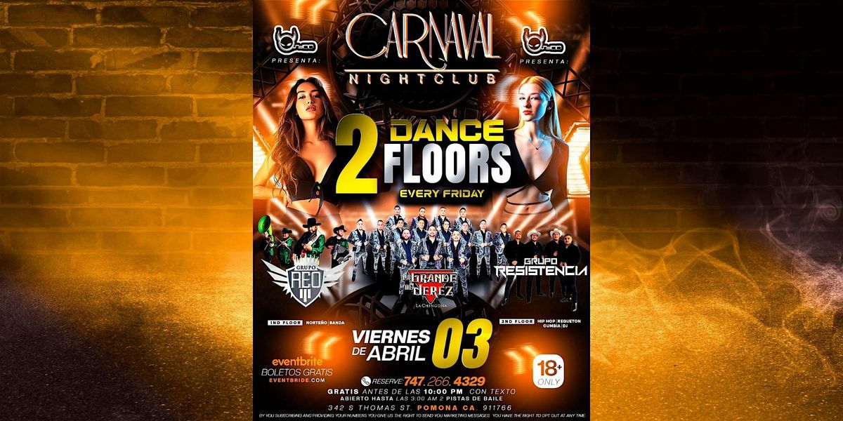 -- CARNAVAL NIGHTCLUB IS THE ULTIMATE VENUE IN POMONA! TWO DANCE FLOORS EQUIPED WITH STATE OF THE ART SOUND AND PRODUCTION SYSTEM WITH A MEZZAINE LEVEL AND 4 FULLY STOCKED BARS