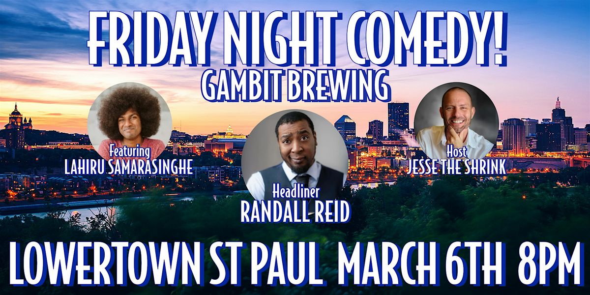 Joining Randall will be feature comedian Lahiru Samarasinghe, a runner-up in Acme Comedy Company's Funniest Person contest and a Racket MN "Top 5 Comic To Watch". Gambit Brewing Comedy founder and St Paul Comedy All-Stars producer Jesse The Shrink hosts.
